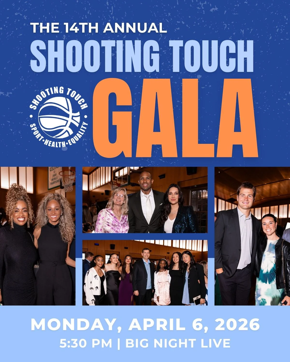We’re excited to invite you to the 14th Annual Shooting Touch Gala, returning on NCAA Men’s Basketball Championship Night for a high-energy, championship-caliber experience at Big Night Live, Boston’s premier live-event venue.